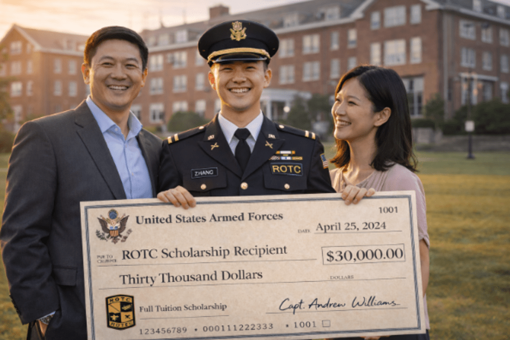 在美国,陆、海、空三军的 ROTC 奖学金通常让学员在“全额学费(Full Tuition)”和“食宿费(Room and Board,固定为每年 $12,000)”之间二选一…